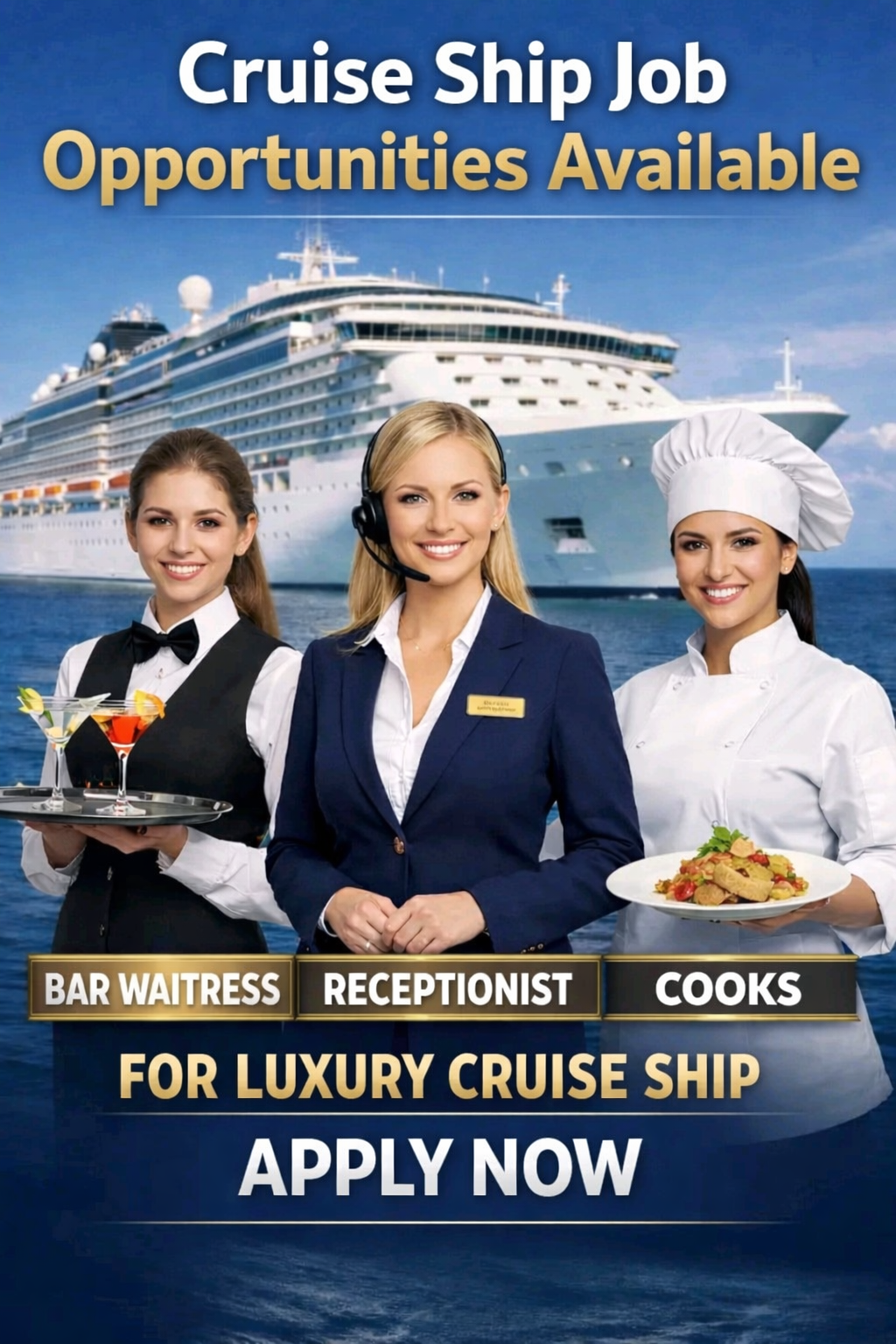 Cruise lines are hiring international workers for several entry-level positions onboard modern cruise ships. These positions are commonly filled by applicants from Africa, Asia, South America, and other regions and do not require advanced degrees. If you are hardworking, reliable, and ready to work in an international environment, this can be an excellent opportunity to travel the world while earning income.